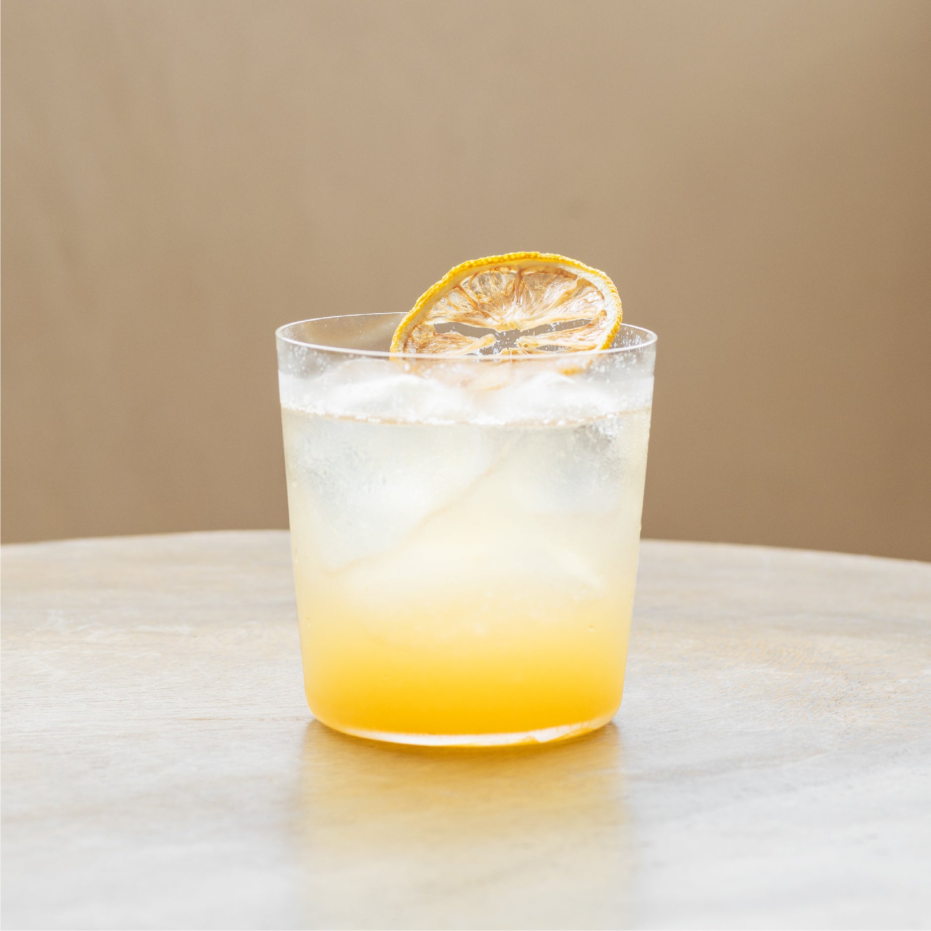 4. ガーニッシュとしてレモンスライスを氷の上へ置く